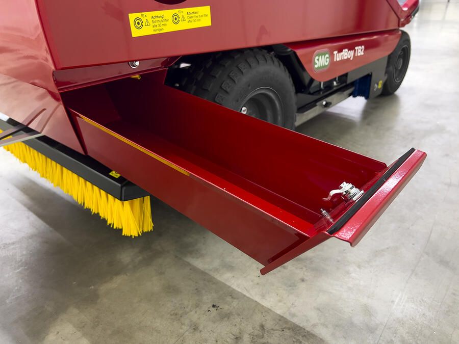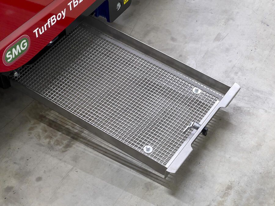 Het borstelframe (borstellat/wiedegbalk) aan de achterzijde van TurfBoy TB2 kan worden opgetild vanuit de bestuurderspositie, hierdoor is het gemakkelijk om randen en hoeken van de velden te bereiken. Dankzij de afneembare rij met losse borstels, kan de TurfBoy TB2 zelfs smalle toegangspoorten met een breedte van 1 meter passeren.